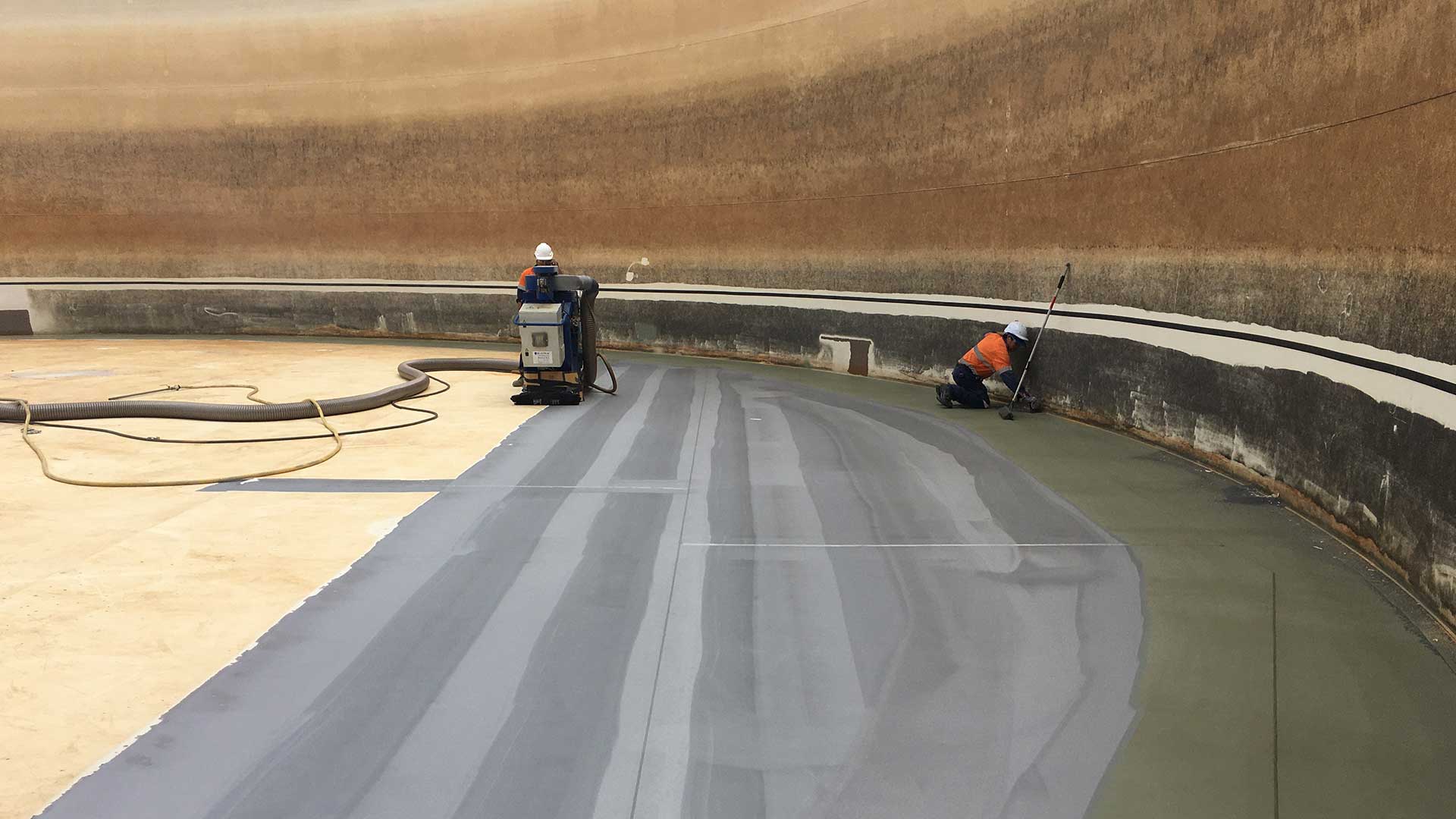 Removal of the existing coating from internal floor and application of new potable water lining to East and West Raw Water Tanks